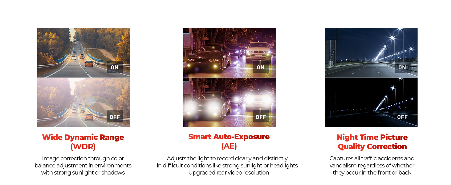 【循环录制】即使存储卡存储空间不足,也能确保连续拍摄视频片段。当存储卡达到容量上限时,行车记录仪将自动删除较旧的片段,为新视频片段腾出空间。